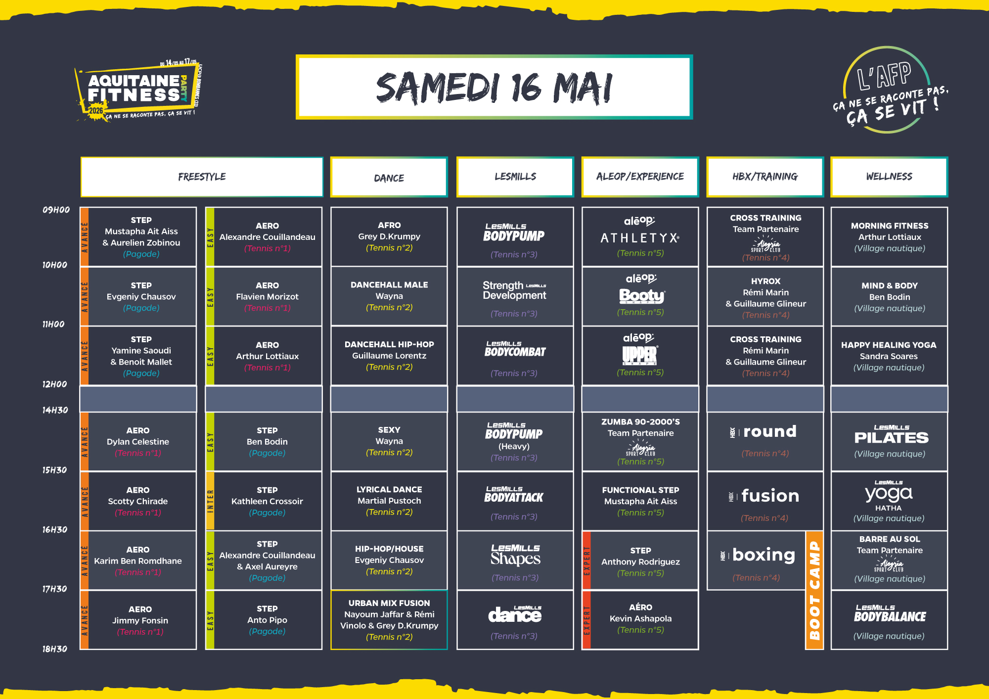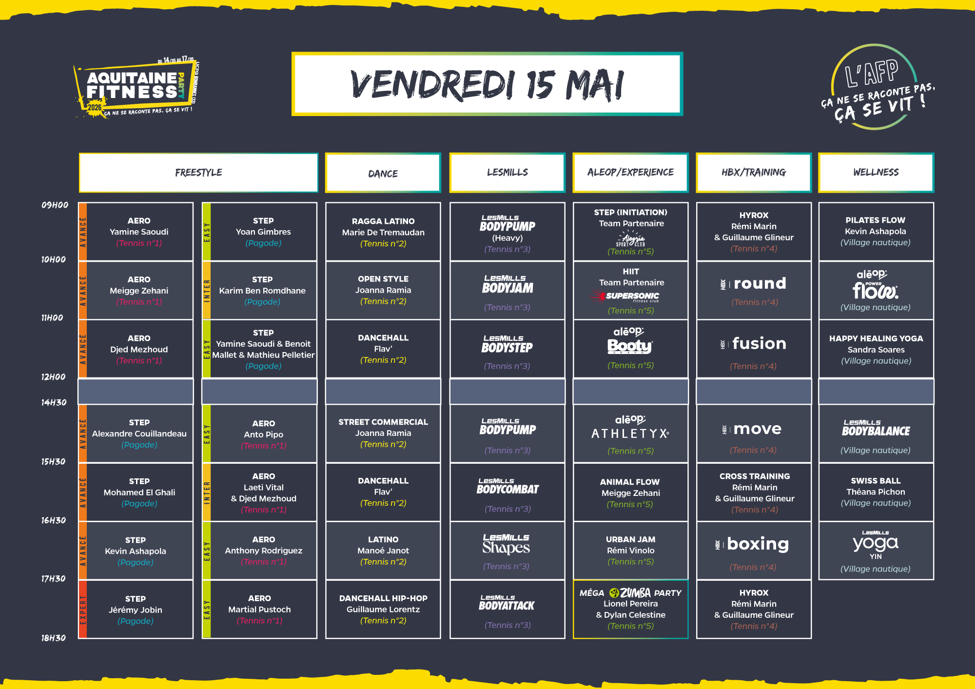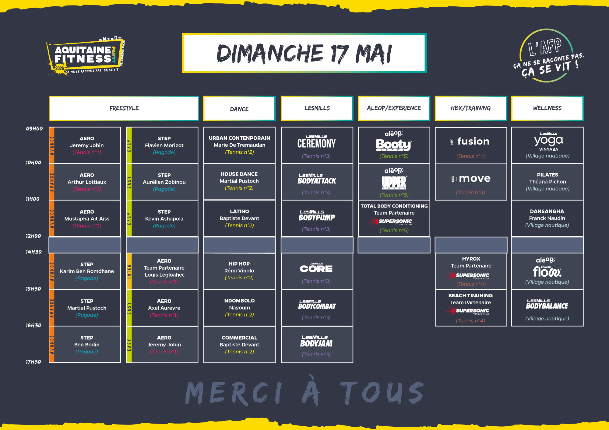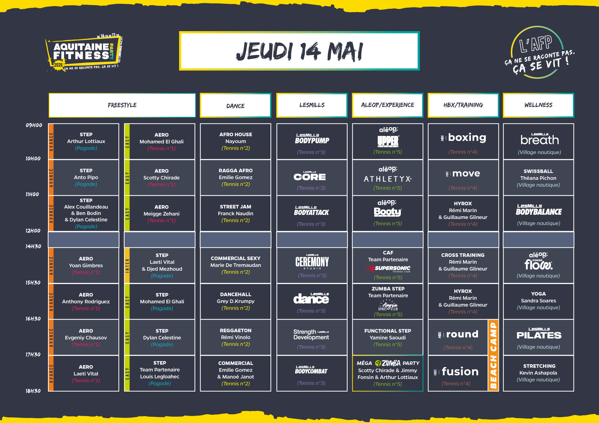 Au programme : un vrai village sportif avec tournois et activités sportives de 9h à 12h et de 15h30 à 18h30 encadrées par deux supers animateurs sportifs de notre team 😉